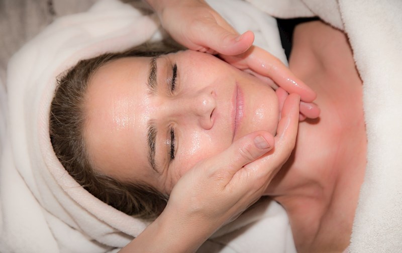 Lækker ansigtsbehandling incl udrensende og opstrammende maske, hovedbundsmassage, ansigtsmassage, pensel og en flaske vand.